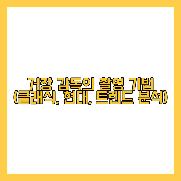 영화는 우리에게 새로운 세상을 보여주고, 감동을 전하며, 때로는 현실을 잊게 만듭니다. 이런 영화의 마법 뒤에는 감독들의 천재적인 비전과 그것을 실현하는 촬영 기법이 있습니다. 오늘은 영화 역사 속 거장 감독들의 촬영 기법을 살펴보고, 현대 영화의 혁신적인 기술들, 그리고 최근 트렌드까지 알아보겠습니다. 카메라 렌즈를 통해 보는 영화 제작의 세계로 함께 떠나볼까요?